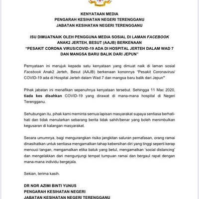 No COVID-19 case at Jerteh Hospital https://t.co/LvzEoIbxxQ #COVID19 #Malaysia https://t.co/JfvSKvLeNCThe Star