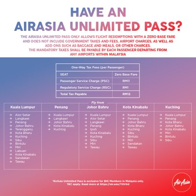 How much do you have to pay for each flight with the RM399* AirAsia Unlimited Pass? Here's all you need to know ;) Get yours at https://t.co/WcAj4xI1tm! Pass sale: 11-15 June 2020 Travel Period: 25 June 2020 - 31 Mar 2021 *Read full T&C & FAQ https://t.co/nrOsZGeJ1a https://t.co/2robbBcmeqWe sent this email to @f1shirtlady. Unsubscribe